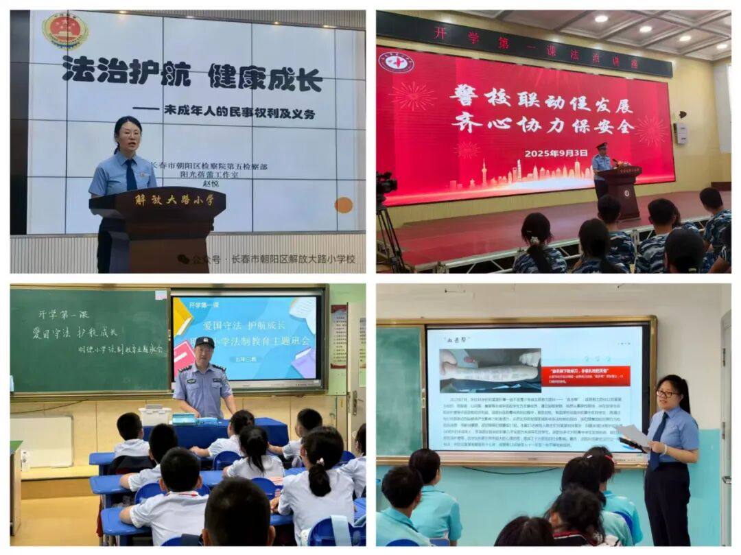 开学第一周,各中小学校充分发挥法治副校长专业优势,结合办学特色与学生年龄特点,创新普法形式、丰富教育载体,通过开学典礼融入法治宣讲、升旗仪式增设法治环节、开展专题法治讲座、组织主题班队会讨论等多样化形式,累计开展普法教育活动40余场,覆盖师生超3万人次。其中,宽平小学以“法治护航 健康成长”为主题,邀请法治副校长、长久路派出所李颖华警官作专题讲座。朝阳区检察院初悦检察官到长春市第112中学开展“点亮法之明灯 照亮美好前程”主题讲座。活动中,各校法治副校长通过生动有趣的故事和真实的涉未成年人案例,深入浅出地帮助同学们明辨是非界限,传授用法律武器维护自身权益的方法,让法治意识深深扎根在师生心中。