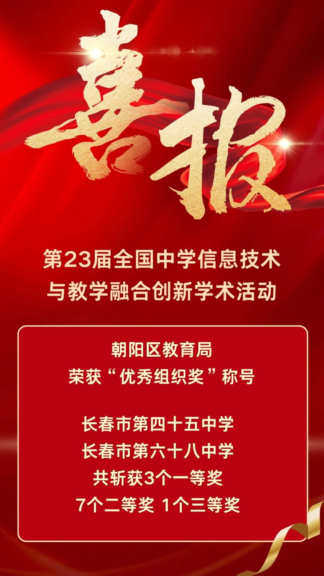 11月30日,第23届全国中学信息技术与教学融合创新学术活动落幕。朝阳区教育局在此次全国性赛事中表现亮眼,交出了一份优异答卷。