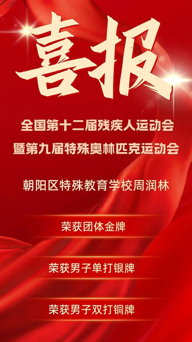 在全国第十二届残疾人运动会暨第九届特殊奥林匹克运动会特奥滚球赛场上,朝阳区特殊教育学校学生周润林一举斩获团体金牌、男子单打银牌、男子双打铜牌,用实力为区域特殊教育增添荣光,彰显了特殊教育学子自强不息的精神风貌。