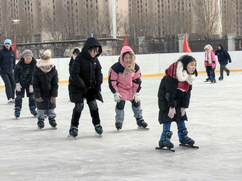 课堂上,教练员从安全防护规范到基础滑行技巧,全程跟进、细致指导,耐心帮助学生突破自我、掌握技能。学生们从初次上冰时的踉跄站立,到逐渐熟练后的流畅滑行,自信快乐的笑容尽情绽放在冬日冰场。