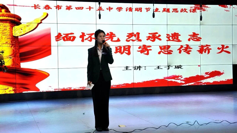 各校创新思政教育形式,打造特色化红色课堂。第四十五中学开设清明主题思政课,深度融合辽沈战役历史与长春解放纪念碑本土红色资源,让学生真切感受本土历史温度;第六十八中学依托“行走的思政课”开展演讲诵读活动,学生以声传情,抒发对革命英烈的崇敬之心;艳春小学联合朝阳区文联开展红色经典诵读展演,艺术家与师生共同传颂英烈事迹;慧达小学开展“我心目中的英雄”宣讲活动,红领巾宣讲团讲述英烈故事,以同龄视角传递红色力量。