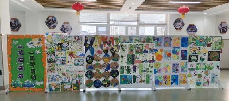 各校以艺术创作为载体,让学生在实践体验中感悟清明内涵、传承红色精神。艳春小学开展“笔韵寄哀思 丹青忆清明”艺术创作活动,各年级学生通过绘画、手工制作菊花、拼贴画、雨伞彩绘等形式寄托哀思;朝阳实验小学校组织学生制作清明主题手抄报,开展诗词朗诵会、传唱传统民谣,推动传统文化与红色教育深度融合;明德小学引导学生手写红色家书、折制纸花纸鹤,让家国情怀在笔墨指尖悄然升华。