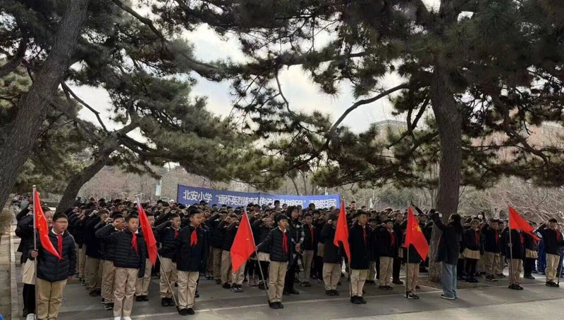 各校搭建线上线下联动平台,拓宽红色传承渠道,推动文明祭扫蔚然成风。清华实验学校、明德小学、朝阳实验小学校等组织全体学生参与“网上祭英烈”云端祭扫,通过献花、留言寄语表达对先烈的敬意与追思;希望学校、明德小学等举行清明主题升旗仪式,通过国旗下讲话、发出文明祭扫倡议,引导师生以绿色、庄重的方式寄托哀思;多校结合吉林本土红色资源,开展东北抗联故事汇、红色书籍阅读、英烈事迹分享会等活动,让学生在听、读、悟中铭记革命历史。