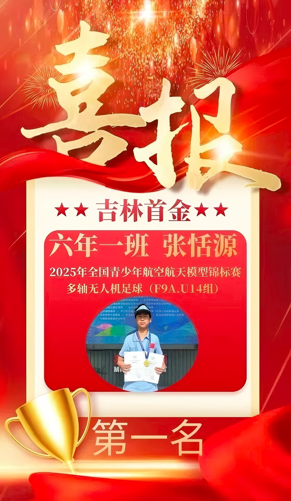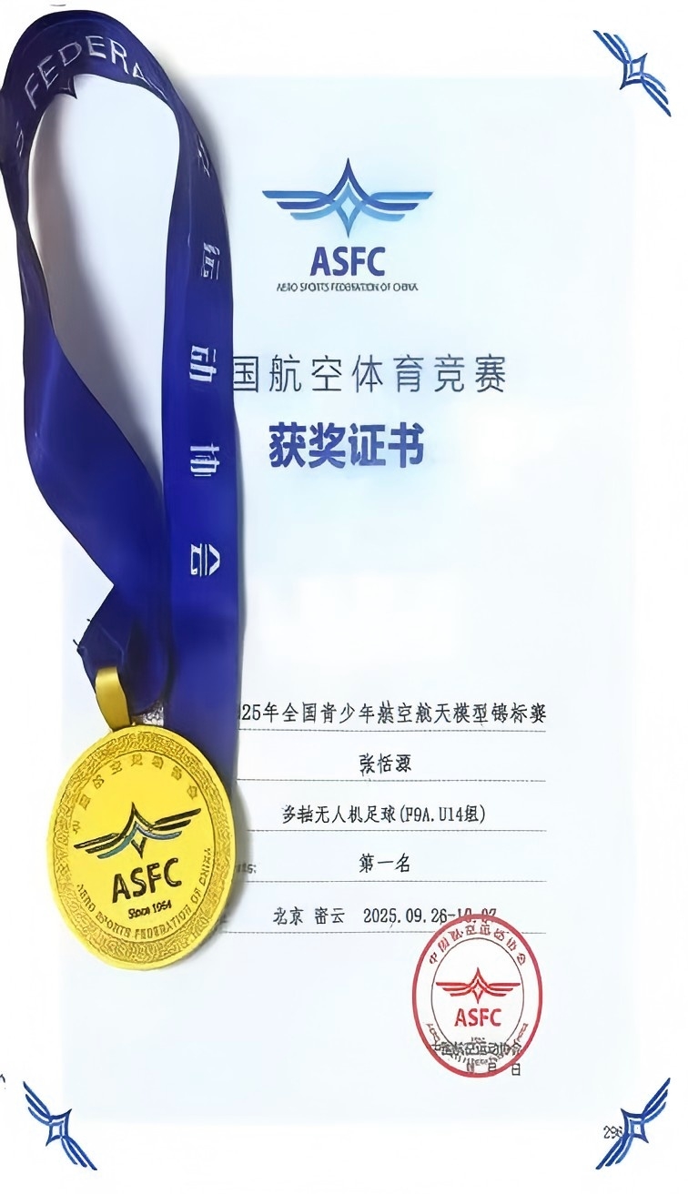 这份全国冠军荣誉,既是张恬源长期坚持训练、不懈努力的成果,也生动彰显了吉林省第二实验朝阳学校在航模教育领域的显著成果与科技体育育人的扎实实力。